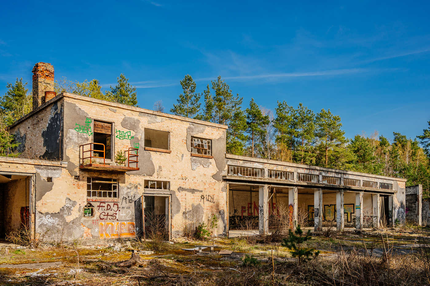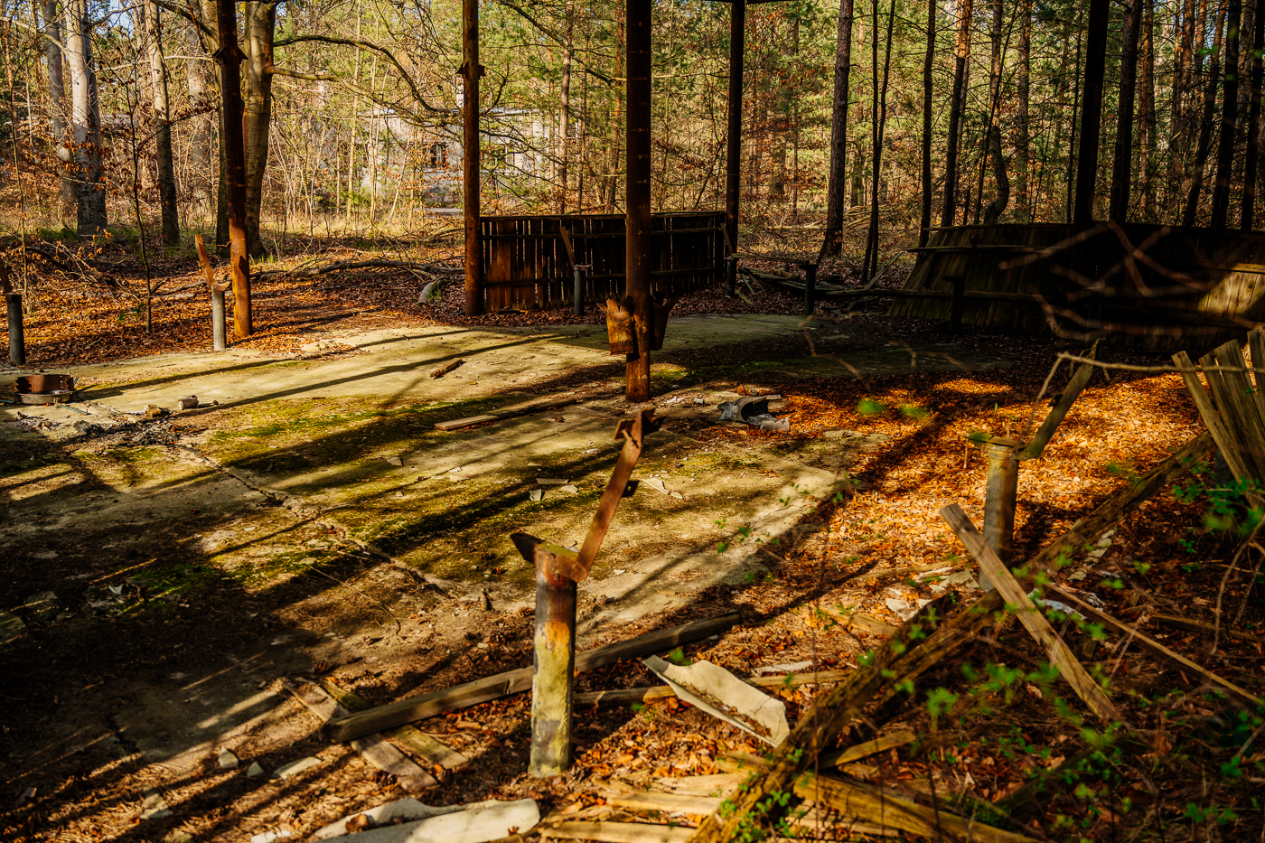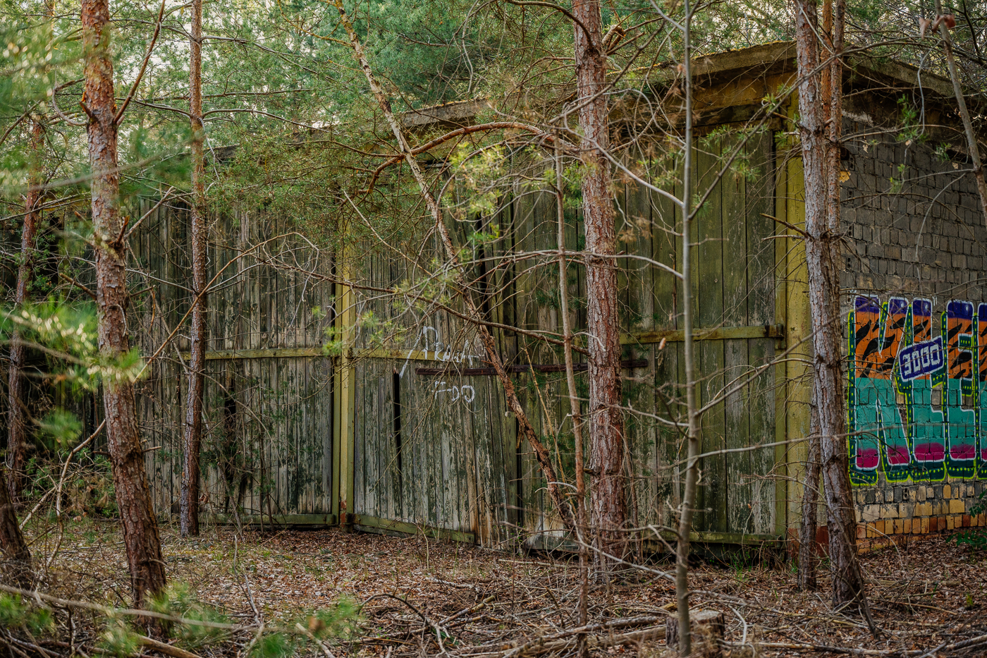 Heute überwuchern die Kiefern langsam den alten Zweck dieses Ortes. Doch in den Gebäuden, in den Wegen und Gleisen und unter den Kronen der Kiefern liegt noch immer etwas von der Schwere der Jahrzehnte.