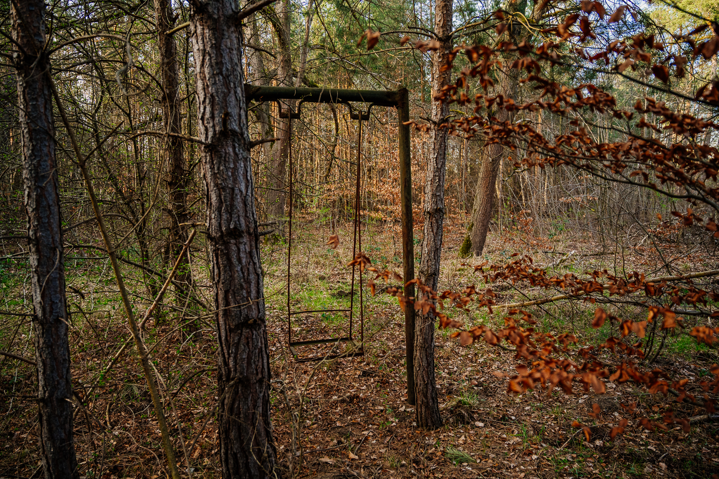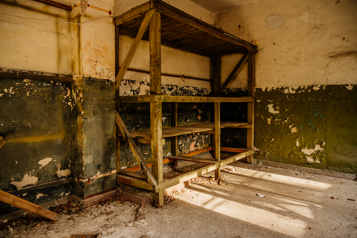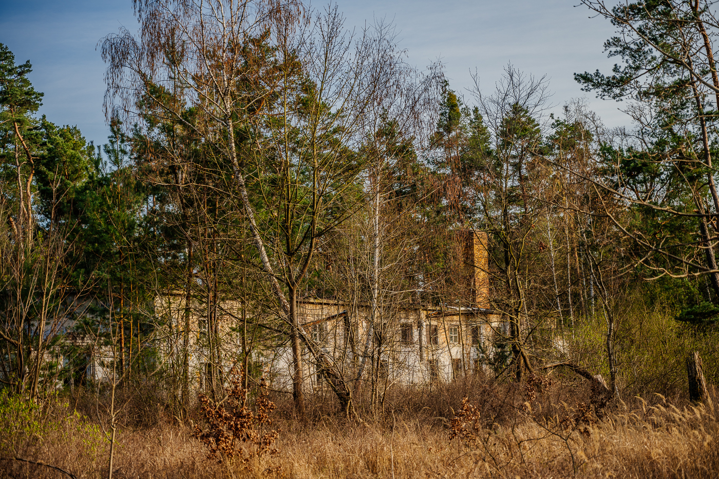 Heute überwuchern die Kiefern langsam den alten Zweck dieses Ortes. Doch in den Gebäuden, in den Wegen und Gleisen und unter den Kronen der Kiefern liegt noch immer etwas von der Schwere der Jahrzehnte.