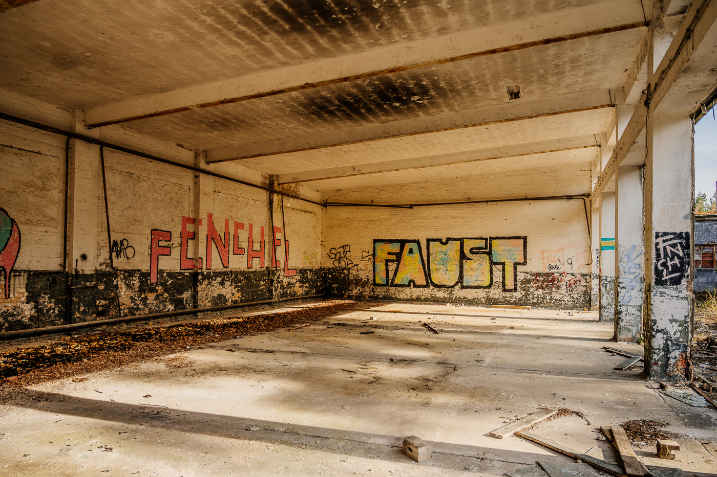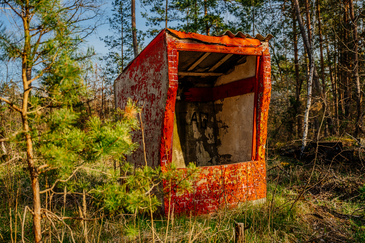 Wenn man sich aus Richtung Norden oder aus Richtung Süden Berlin nähert, dann gibt es da diese unsichtbare Linie. Der Boden wird sandiger, die Anzahl der Kiefern nimmt zu. So eine unsichtbare Linie findet sich auch bei Dessau. Man weiß, dass man sich Berlin nähert, auch wenn Berlin noch weit weg scheint. Hier also, wo der Boden wieder sandiger ist, liegt zwischen Autobahn und der Stadt aus Eisen ein besonderer Ort. Früher eine Heeresmunitionsanstalt, später dann eine GSSD-Garnison. Hier wurden einst Chemiewaffen produziert, nach dem Krieg wurde hier die Munition aus der Ostzone gesammelt und in Güterzügen nach Wolgast transportiert, um sie dann unter anderem vor Bornholm in der Ostsee zu versenken, wo sie noch heute liegt.