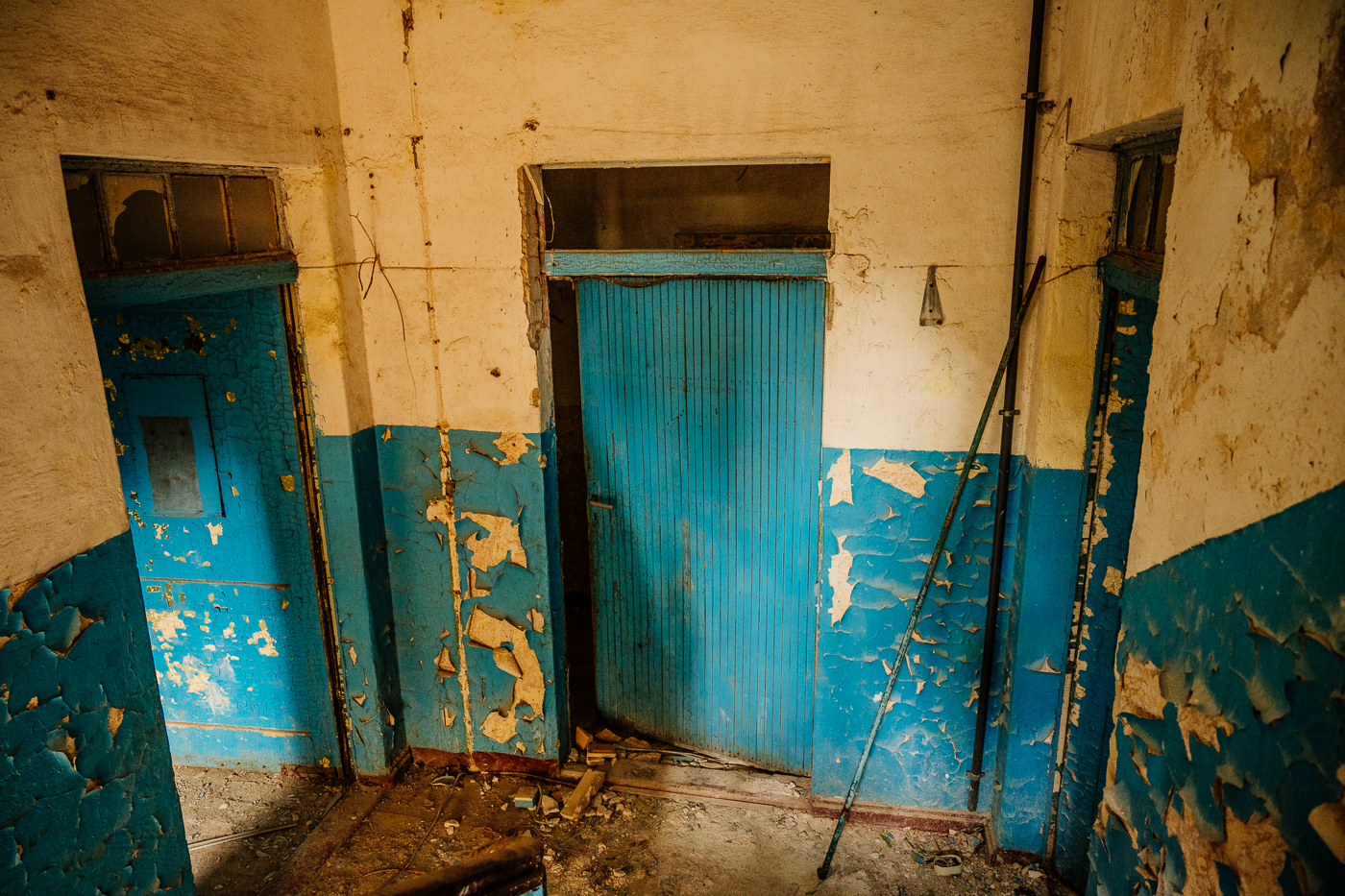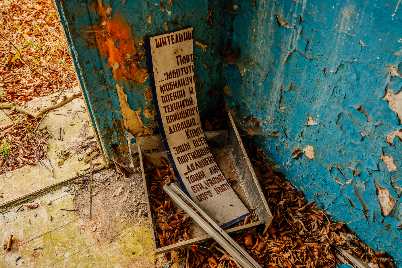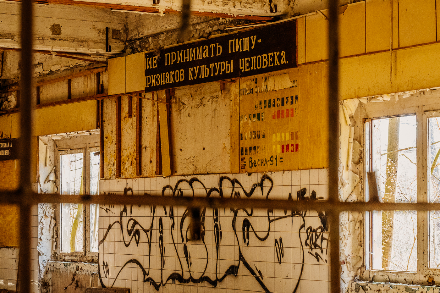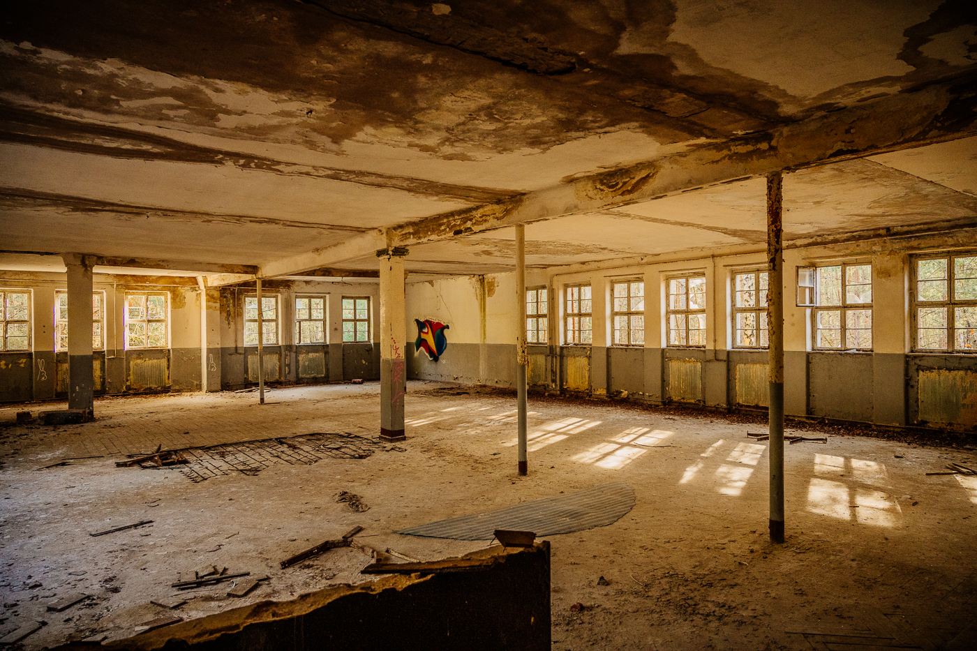 Später entstand direkt neben der Garnison ein Werk, wo im Auftrag der DDR Landminen und Selbstschussanlagen hergestellt wurden. Beides Waffensysteme, die an der innerdeutschen Grenze eingesetzt wurden. Seit Herbst 1992 herrscht auf dem Gelände wieder die Ruhe, die man so oft im ländlichen Osten findet. Die Kiefern ragen in den blauen Himmel. Die Abendsonne durchflutet das Gelände. Wie mag es hier zugegangen sein? In der Kantine, in der Offiziersmesse, in den Offizierswohnungen? Was ist aus den Kindern geworden, die hier groß geworden sind, inmitten des Militärs? Wie sah der Alltag aus in den Lagergebäuden und Werkstätten?